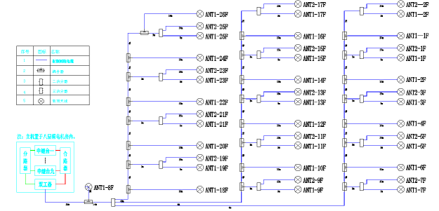 根據客戶提供的資料和要求,結合北峰電訊多年的無線對講系統設計建設經驗,建議在8F的弱電機房架設一套無線對講系統,系統由BF-5000基地中繼臺、合路器、分路器、電源、雙工器組成,信號經耦合器、功分器、吸頂天線組成室內分布系統均勻的分布在酒店內各個區域;電纜沿橋架敷設;吸頂天線安裝盡量靠近橋架安裝。從而保證覆蓋區內各功能區間的無線通訊暢通、語音清晰可靠。