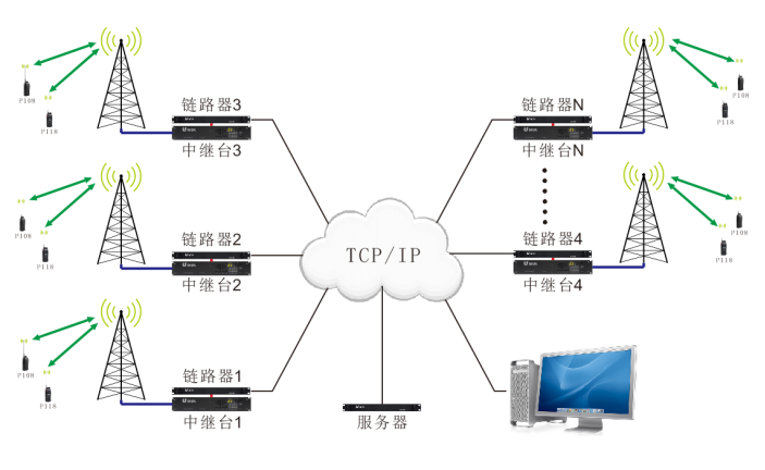 IP互聯(lián)是將無(wú)線電信號(hào)所承載的語(yǔ)音信號(hào)通過(guò)IP網(wǎng)絡(luò)進(jìn)行傳輸?shù)囊环N技術(shù)。通過(guò)TCP/IP網(wǎng)絡(luò)把多個(gè)IP中繼臺(tái)連接起來(lái),用蜂窩及微蜂窩多區(qū)域覆蓋的方式解決跨區(qū)通訊及因?yàn)檎系K物遮擋,造成覆蓋區(qū)內(nèi)有大量盲區(qū)的問(wèn)題。最終實(shí)現(xiàn)分布式對(duì)講機(jī)信號(hào)覆蓋和超長(zhǎng)距離無(wú)中繼互聯(lián)的功能,并且能無(wú)縫接入到已有的對(duì)講機(jī)調(diào)度系統(tǒng),方便指揮調(diào)度。