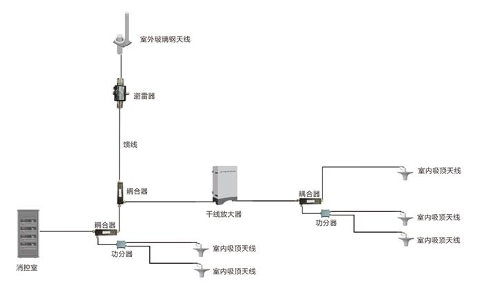 對(duì)講機(jī)單機(jī)通訊是通過(guò)對(duì)講機(jī)本機(jī)的發(fā)射功率,直接呼叫另一部對(duì)講機(jī)。由于對(duì)講機(jī)本機(jī)功率較低(一般為2-4W),單機(jī)通訊時(shí)通訊距離有限。為解決上述問(wèn)題:在需要覆蓋的地區(qū)中心(消控室)放置中轉(zhuǎn)臺(tái),通過(guò)合路分路、干線放大器以及天饋系統(tǒng)等設(shè)備,將中轉(zhuǎn)臺(tái)的接收、發(fā)射天線分布于預(yù)覆蓋地區(qū)的各個(gè)角落。當(dāng)對(duì)講機(jī)發(fā)起呼叫時(shí),不再是靠對(duì)講機(jī)本機(jī)功率直接呼叫另一部對(duì)講機(jī),而是呼叫中轉(zhuǎn)臺(tái)距離該對(duì)講機(jī)最近的接收天線,中轉(zhuǎn)臺(tái)收到該天線的傳回的呼叫信號(hào)后,控制所有發(fā)射天線自動(dòng)轉(zhuǎn)發(fā)該呼叫信號(hào),這樣,無(wú)論被呼叫的對(duì)講機(jī)在何位置,均能接收到呼叫信號(hào)。